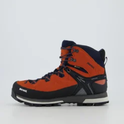 Alpin Sohle – Der Fersenspoiler ist abgewinkelt und schafft somit Fläche zur Steigeisenaufnahme ohne Überstand. Ein ökonomisches und natürliches Auftreten und Abrollen ist somit möglich.